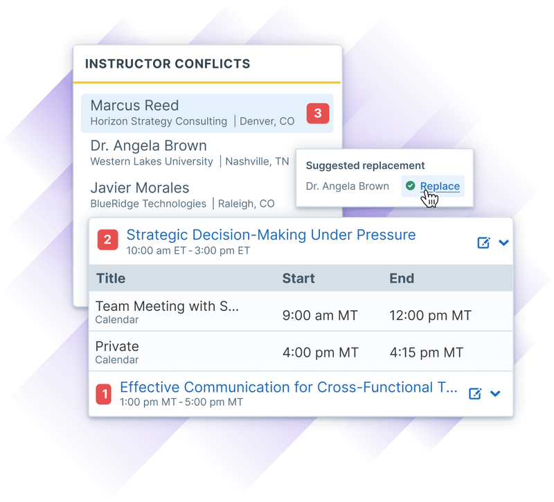 Finding an instructor with the right credentials is a manual, error-prone task that has serious impacts on training goals.